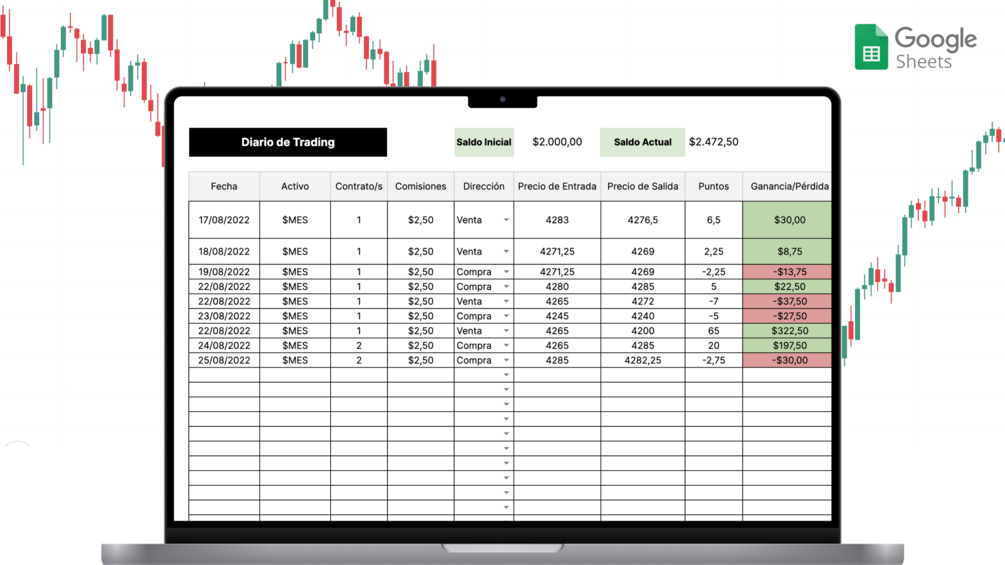 Consigue tu Diario de Trading Gratis para registrar y analizar todas tus operaciones.