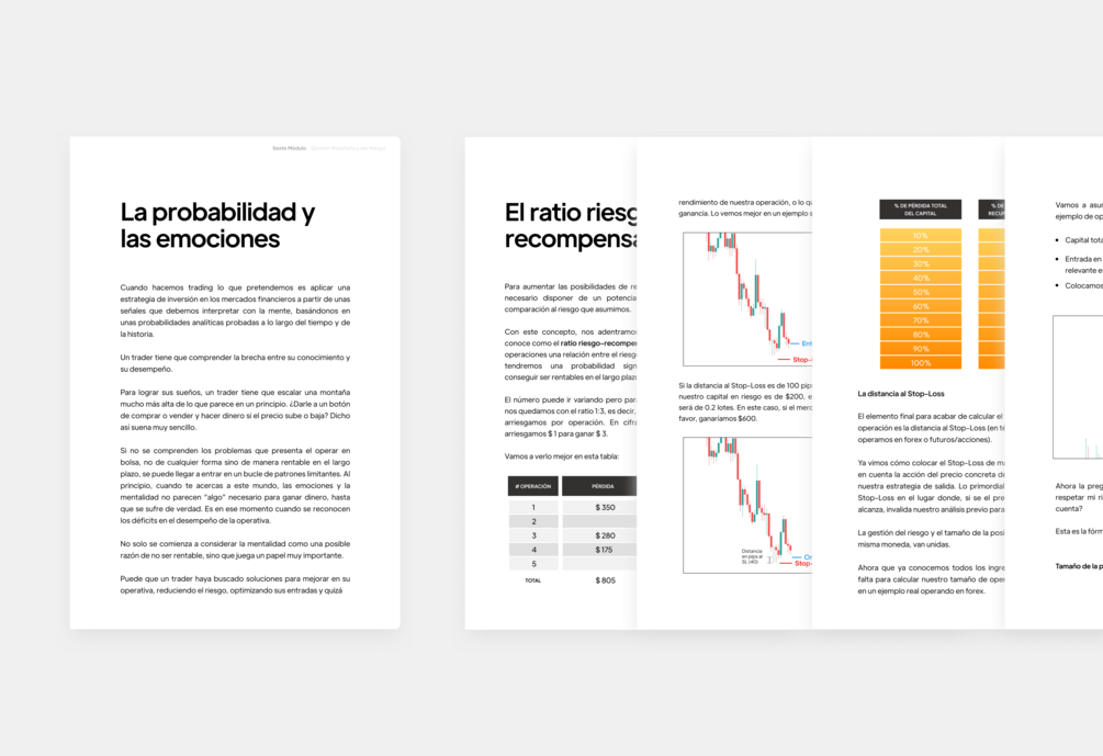 Al adentrarte en este libro digital recorrerás a través de +330 páginas, hojas de ruta y plantillas dinámicas, todos los temas necesarios para ejecutar un estilo y filosofía de trading minimalista con un enfoque emprendedor ideado para alcanzar la rentabilidad en tu trading en el largo plazo.