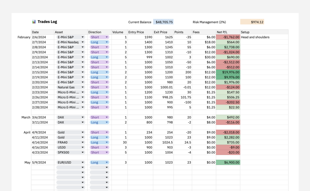 Become a better trader with this powerful tool right in Google Sheets to track all your trades. You can easily log each trade you make, analyze what went right or wrong, and learn from your past experiences. By understanding your trading patterns and improving your strategies, you can boost your chances of success and make more profits with every trade.