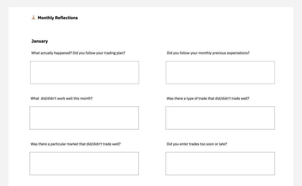 - Analyze your trading performance. Review your monthly, quarterly and yearly summaries to get a sense of both short and long term progress in your trading journey. Analyze all the data you need to improve your edge in the market.
